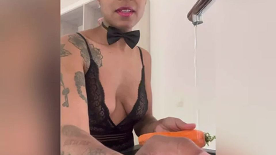 Si nunca has visto a una conejita negra masturbándose con sus zanahorias, aquí te dejo a Prisca y sus deliciosas idas sexuales.