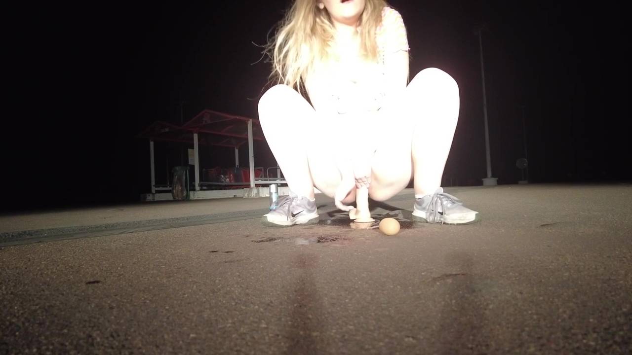 Para que le dé más placer, a ella se le ocurre desnudarse y masturbarse ne un estacionamiento público con vergüenza de que alguien la pueda ver.