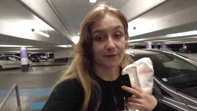 La rubia se atreve a masturbarse desnuda en el estacionamiento