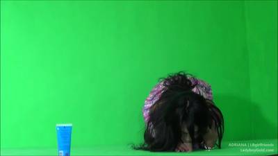 Esta vez Adriana se ha metido en un gloryhole en donde tendrá la oportunidad de mamarse una polla que sale por el agujero y mientras tanto se jala la polla.