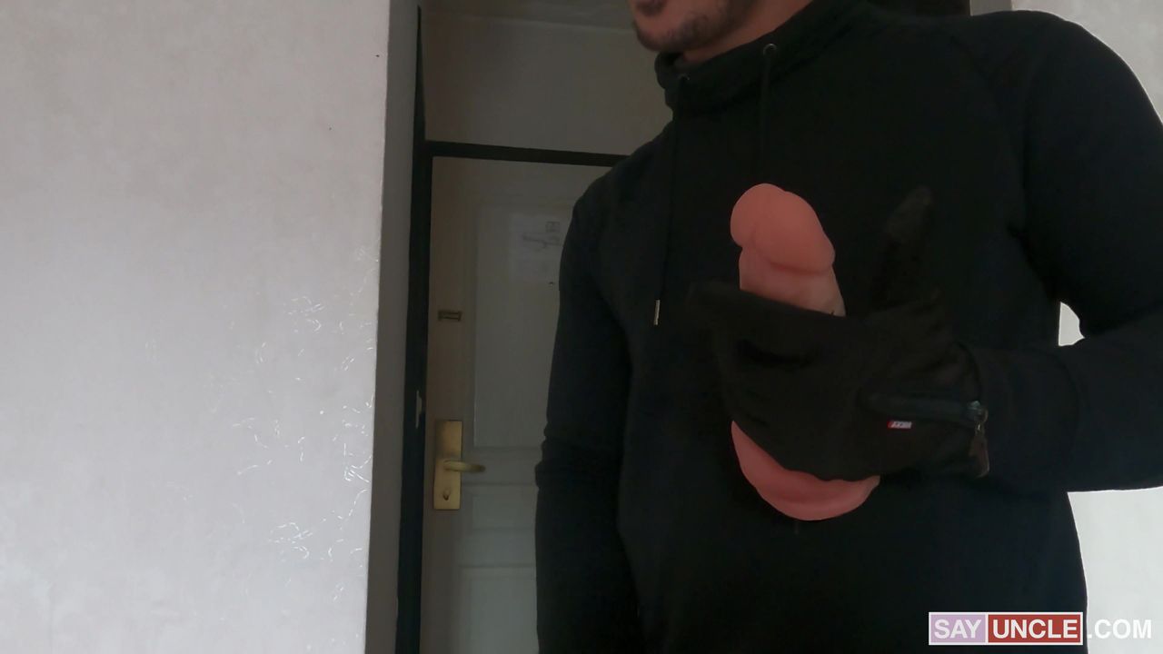 Este ladrón fue pillado masturbándose mientras miraba a ese hombre en la cama. Le pregunta por el dildo con el que va a follárselo!