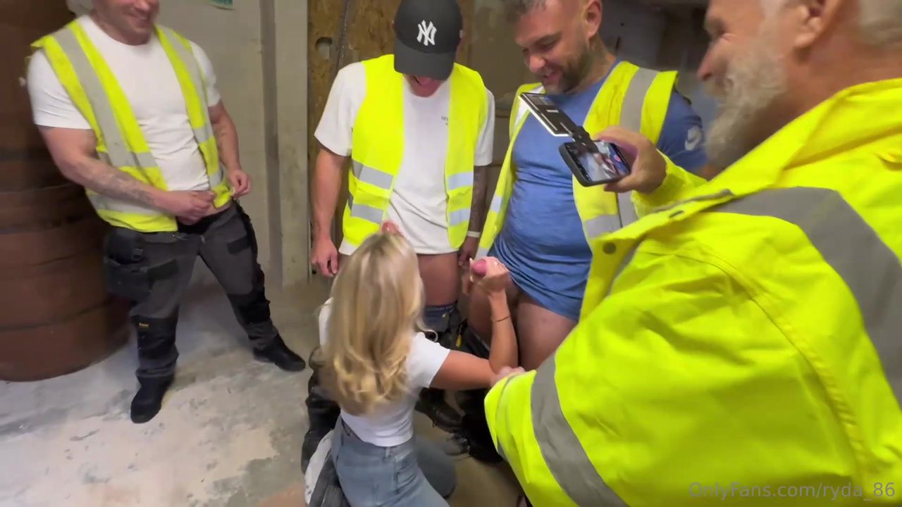 Bonnie Blue se hace follar sin piedad por unos obreros en un gangbang. Su coño y su culo aguantan pollas duras para un bukkake espeso y ardiente.