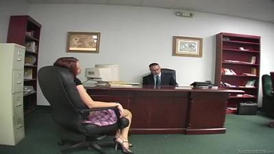 Esta colegiala pelirroja será llamad a ala oficina del director, y él se querrá aprovechar de ella, y por eso ella golpeará sus bolas antes de follar con él.
