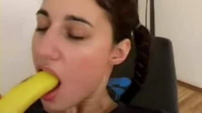 Esta joven árabe no tiene un dildo en casa, y se le ocurre meterse una banana bien dura en su coño para sentir excitación sexual. Ella se masturba con muchas ganas