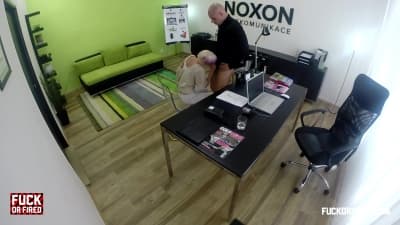 Es por eso que va a la oficina de su jefe y permite que él se divierta con su cuerpo desnudo, y la veremos en acción ene sta escena en la que gozará