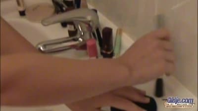 Esta rubia jovencita quiere saber lo que se siente al follar con un viejo y por eso seduce a este tío en la bañera, mamándole la polla y dejándose.