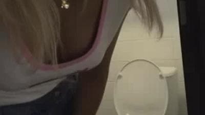 Esta mujer rubia es demasiada caliente y cuando le dan ganas de masturbarse fuera de casa, se busa un baño y se desnuda para tocarse el cuerpo.