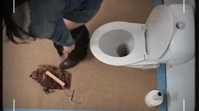 Esta mujer preciosa sabe exactamente lo que debe hacer cuando esté sentada en el w.c. y salga una polla bien dura por un agujero de la pared.