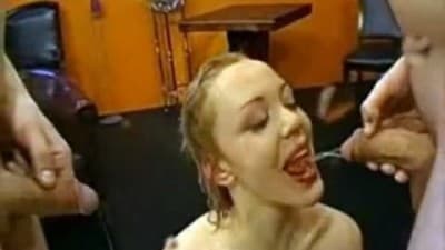 A esta mujer le encanta follar y después de un gang bang muy bueno se queda con la boca llena de semen.