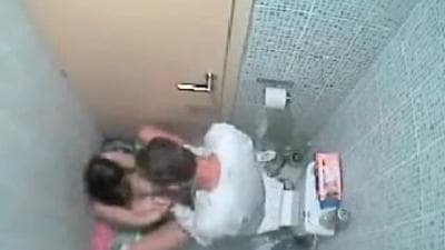 Esta mujer es una puta muy buena a la que le encanta mamar polla, y por eso se lleva a su macho a un baño público para mamarle la polla!