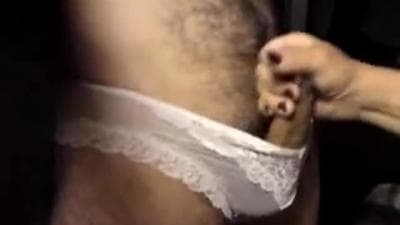 En este vídeo amateur veremos como este hombre se pone la ropa interior de su chica para excitarse mucho.Ella le hace una paja sabrosa.
