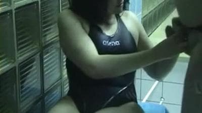 Esta nadadora estará en los vestidores con un amigo que le quiere dar una dosis de placer sexual que ella no desperdiciará. No te la pierdas mamando.