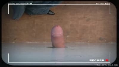 Esta zorra rubia quiere mamarle la polla a un desconocido, que se esconde tras la pared, y apenas deja que su polla traspase el agujero de la gloria.