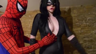 Harmony Reigns se vestirá de Batichica, mientras espera que llegue Spiderman para follarla de la mejor manera. Su disfraz durará poco tiempo.