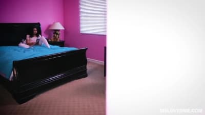 Taylor May es una preciosa morena que siente su cuerpo caliente y necesita saciar todas estas ganas de follar, haciéndolo con este tío en la cama.