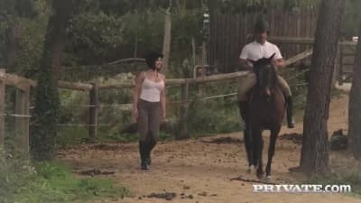 Esta mujer espera que este hombre se baje de su caballo y se la folle, ya que siente en su cuerpo mucho calor y debe saciarse con el mejor sexo.