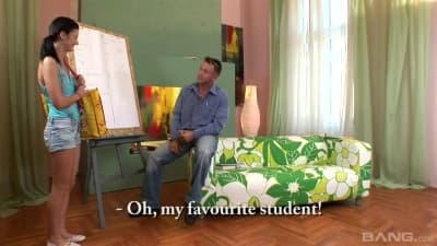 Esta morena es la alumna favorita de este maestro, ya que además de ser muy inteligente, es capaz de follar muy rico en cualquier momento. Te gustará!