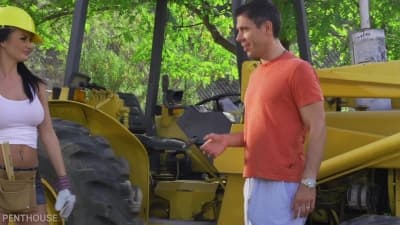 Esta morena es demasiado activa al a hora del sexo y por eso se ha buscado un nuevo lugar para follar. Sobre una máquina excavadora se entrega al sexo