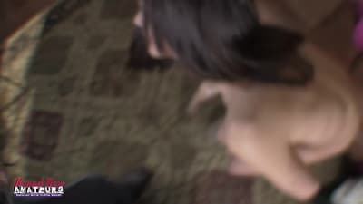 Ella va a pasar mucho tiempo masturbándose en el sofá y luego le va a querer mamar la polla al hombre que la acompaña en esta escena sabrosa de sexo.