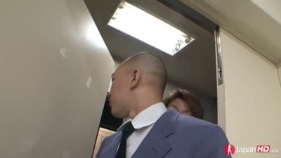 La chica está en el banco esperando a ser atendida y comienza a masturbarse. Los dos asistentes están locos de contentos y empiezan a ganar una mamada