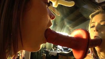 A este tío le gusta llevar el porno de chicas sexys al extremo. Hoy en día, chupan grandes pollas de goma mientras el tipo filma excitado!
