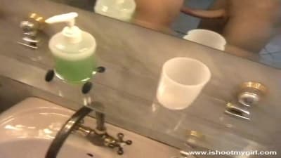 Esta morena se llama Tanya y le quiere chupar el pene a un tío llamado Andrew que la espera con la polla parada mientras está el inodoro, Qué guarra!