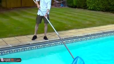 En la piscina de la casa de esta mujer madura, cumplirá sus sueños de juventud una vez que sea follada por un joven que ha venido a hacer la limpieza