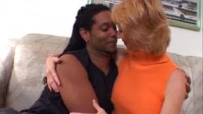 Una señora pelirroja madura pero muy zorra disfruta follando a un joven negro con una gran polla. Ella quiere más!