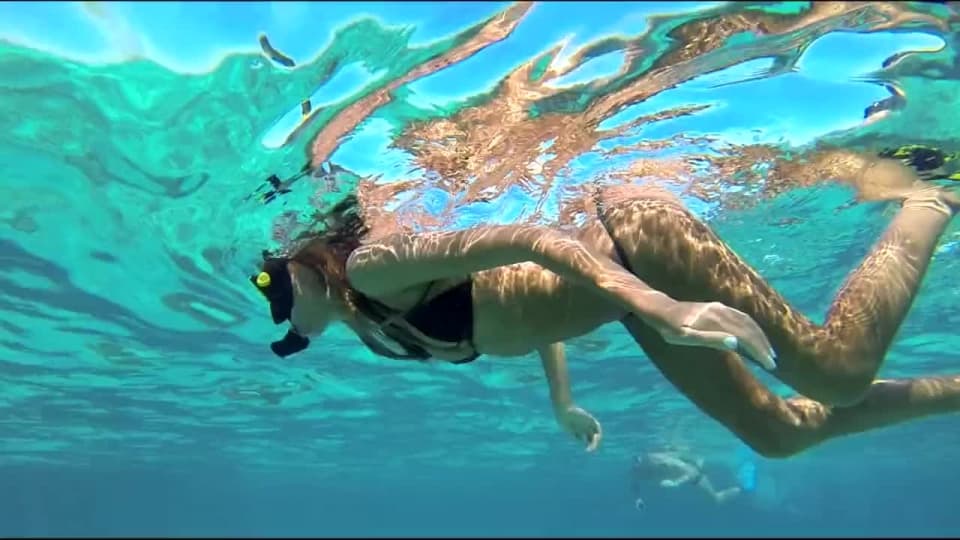 En un paraíso como este no podría faltar una mujer bella que se desnudaría para ir a capturar estrellas de mar y dejarnos ver su chocho y sus tetas mojadas