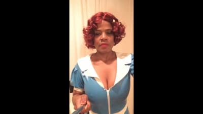 Raven Swallowz, es una stripper negra con un cuerpo sabroso, y le gusta lucir el disfraz de enfermera mientras hace una sesión de video selfie sexual.