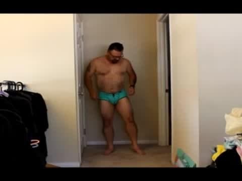 A este hombre le gustará mucho mostrarnos toda su ropa interior. Se la pone y se la quita, dejando a la vista su polla en esta escena amateur.