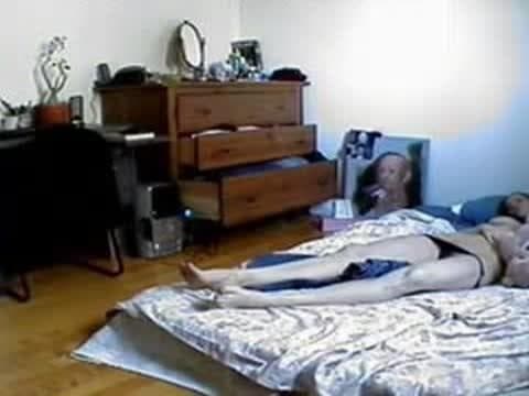 Esta morena ni se ha dado cuenta que en el agujero de la pared hay una pequeña cámara grabando el momento en el que está en topless en la cama.